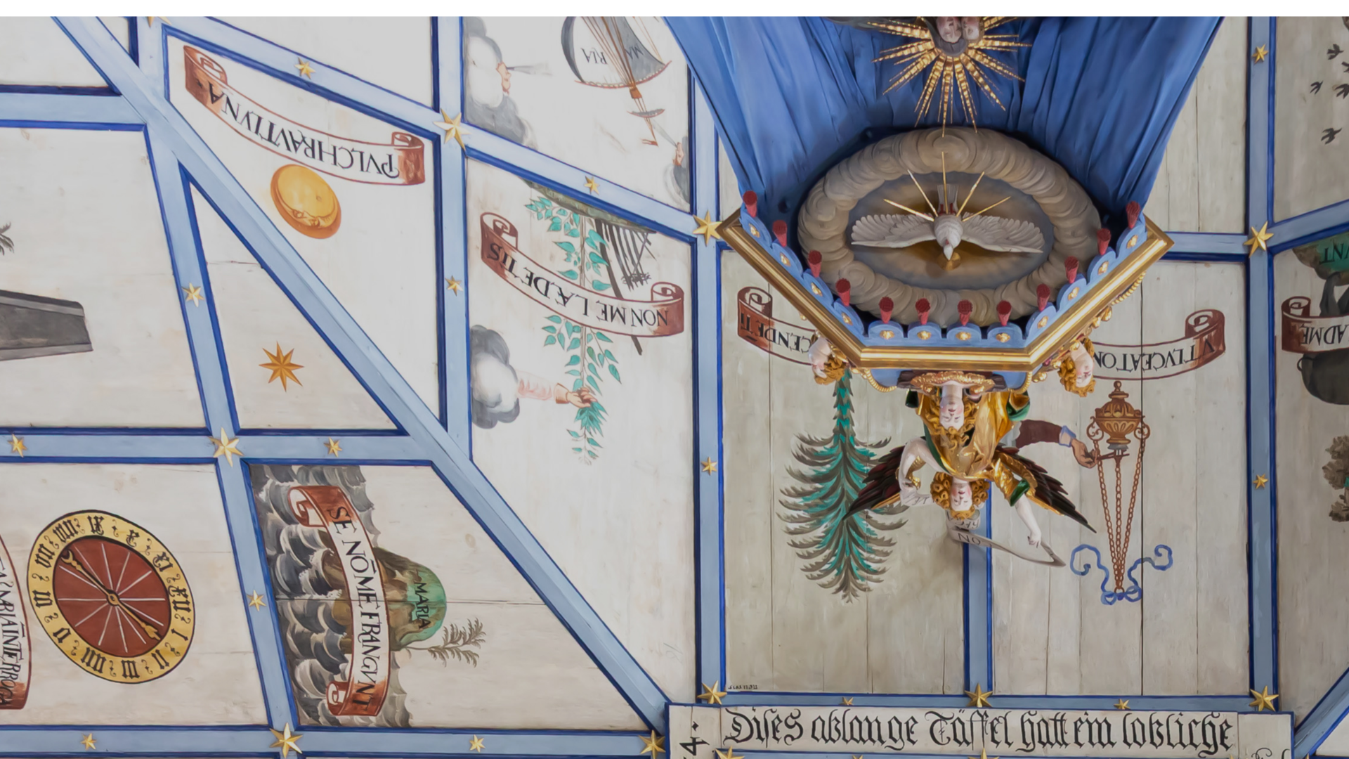 Wie ein lichtes Zelt überspannen die mit Sinnbildern und Sprüchen fein bemalten Holzplatten das Innere der Kirche. Die Idee zu diesem riesigen Andachtsbuch stammte vom Kapuzinerpater Ludwig von Wyl. Er versorgte den Luzerner Maler Kaspar Meglinger mit Skizzen und graphischen Vorlagen. Dieser verwandelte die Kirchendecke 1654 in einen Himmel voller frühbarocker Embleme bestehend aus 324 einzelnen Bildtafeln. Sie versinnbildlichen einen Ehrentitel oder eine Tugend Marias, oder sie verweisen auf ein Ereignis in ihrem Leben und auf ihre Rolle im göttlichen Heilsplan – eine bild – und wortgewaltige, nicht enden wollende Litanei zur Verherrlichung der Himmelskönigin und «Patrona Lucernae».
