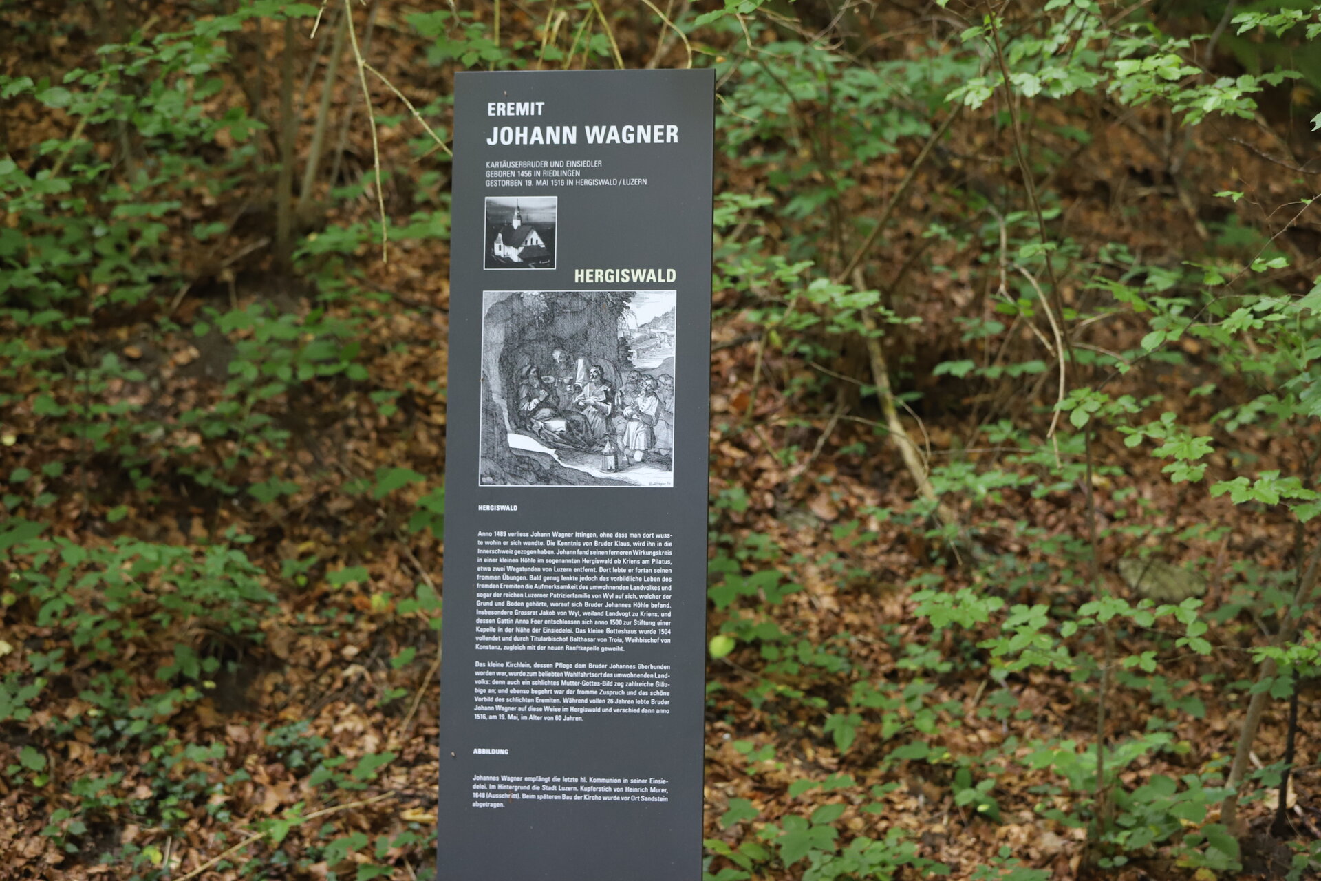 An Sonn- und Feiertagen sah man den Waldbruder in Kriens und Luzern, wo er zur Messe ging und Almosen sammelte. Vornehme Gönner errichteten ihm ein einfaches Bethäuschen – das erste Gotteshaus im Hergiswald. Bald wurde der Bruder von vielen Menschen aufgesucht. Hans Wagner starb 1516 sechzigjährig. Seine Gebeine ruhen in der steinernen Tumba (= sarkophagartiges Grabdenkmal) rechts vom Portal zur Liebfrauenkapelle.