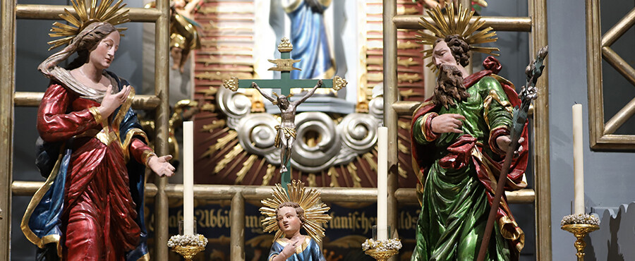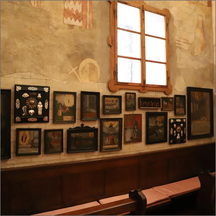 Wer hier hereintritt besucht die Heilige Familie in ihrem Wohnhaus. Die Loretokapelle ist eine masstabsgetreue Nachbildung des Originals aus Nazareth, heute in Loreto, Italien. Das Altargitter trennt den Wohnraum von der schmalen Küche. Dort zeigt sich den Pilgern die schwarze Loretomadonna. Auf der Leuchterbank steht die Heilige Familie, über ihnen die Heilig-Geist-Taube und segnend Gottvater. Unter dem Verkündigungsfenster sind Ex-Voto-Tafeln angebracht. Diese zeugen von Gebets-Erhörungen und Heilungen. Es lohnt sich, hier im Gebet still zu werden und das grosse Geheimnis der Menschwerdung Gottes zu spüren.
